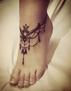 脚腕脚链纹身 性感的女生脚踝处脚链纹身图片