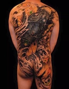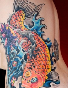 新传统鲤鱼主题的彩色满背大图纹身作品