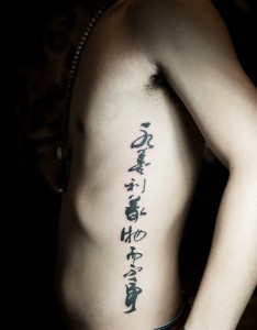 男士侧腰部非常潇洒的汉字纹身刺青