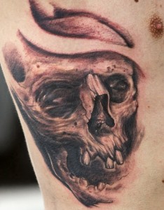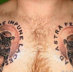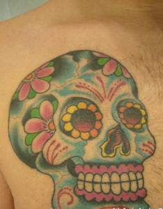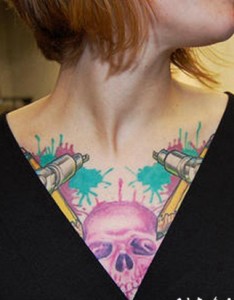 骷髅头和刀片胸部纹身图片,是小编为您精心挑选的纹身图片,希望您会喜欢,更多国内外精品纹身图片等尽在优美图库。
