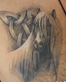 胸部长鬃马和符号纹身图案