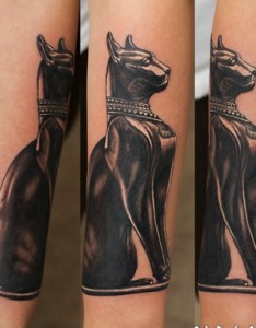 手臂奇妙的埃及猫雕像纹身图案