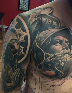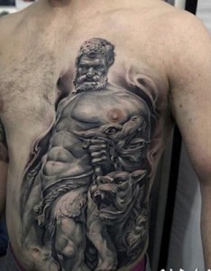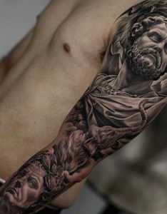 经典半甲人物雕像纹身霸气十足