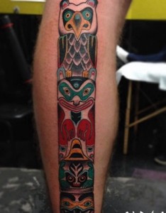小腿彩色卡通部落动物雕像纹身图案