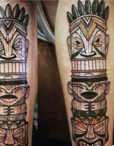 小腿彩色的部落卡通雕像纹身图案