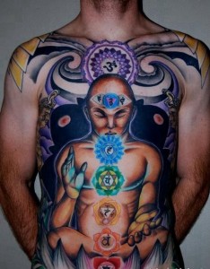 胸部和腹部彩绘神秘的印度教雕像纹身图案