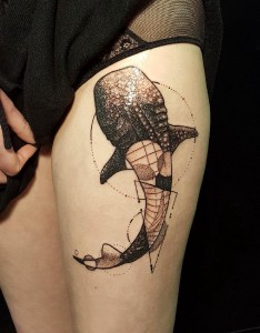 大腿纹身图女 女生大腿上三角形和鲸鱼纹身图片