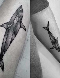 上一篇:小臂点刺风格黑色大鲨鱼和内脏纹身图案