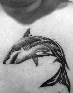 令人印象深刻的黑色鲨鱼图腾纹身图案