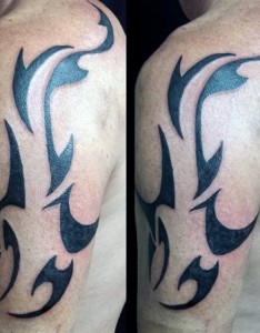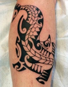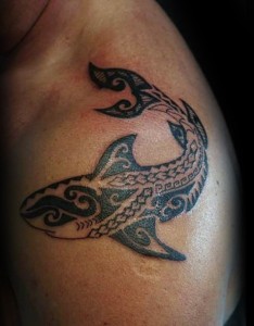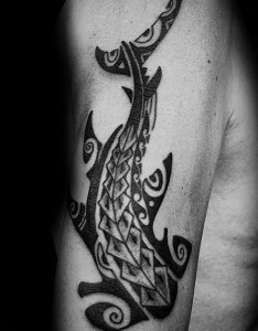 肩部黑色的波利尼西亚风格鲨鱼纹身图案