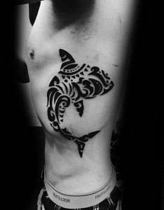 侧肋黑色图腾鲨鱼波利尼西亚风格纹身图案