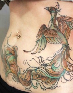 孕妇遮盖妊娠纹的女士腰部腹部纹身作品图案