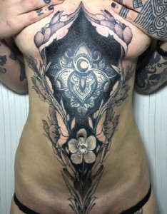 腹部 纹身图案 女生腹部彩绘的花朵纹身图片