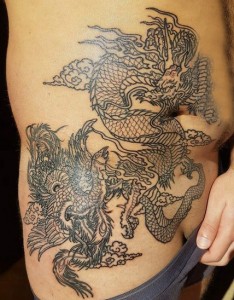 飞龙纹身图 男生腹部黑色的飞龙纹身图片