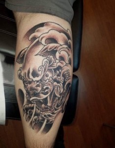 小腿对称纹身 男生小腿上彩色的神兽纹身图片
