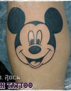 纹身卡通 男生小腿上黑色的米老鼠纹身图片