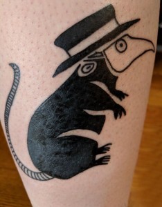 老鼠纹身 男生小腿上戴帽子的老鼠纹身图片
