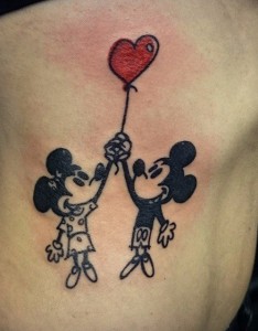 侧腰纹身图 女生侧腰上心形和米老鼠纹身图片