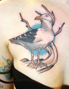 纹身海鸥 女生胸部彩色的海鸥纹身图片