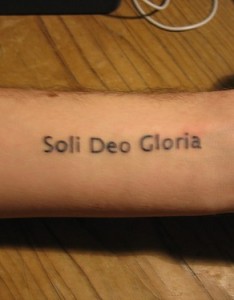 手臂Soli Deo Gloria字母纹身图片